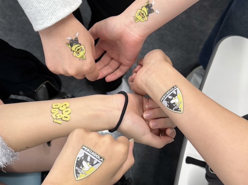 ![]() 桜美林大学タトゥーシールで”想い”を形に! 桜美林大学スポーツ産業ゼミでは、ペスカドーラ町田との連携企画として、試合会場にブースを出展しています。今回のテーマは「想いをカタチに」。ファンの皆さまがペスカドーラ町田への応援の想いを、タトゥーシールという形で身につけられるよう企画しました。ドーラくん、エンブレムなどを取り入れたデザインで、子どもから大人まで楽しめる内容になっています。1枚200円で販売し、売上はペスカドーラ町田様への運営費として活用します。 ペスカを応援する“想い”を、ぜひタトゥーシールで“カタチ”に!試合当日は会場ブースにてお待ちしています。学生の発想と情熱から生まれた本企画を、ぜひお楽しみください。 価格:200円 場所:1Fロビー |