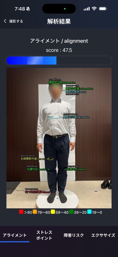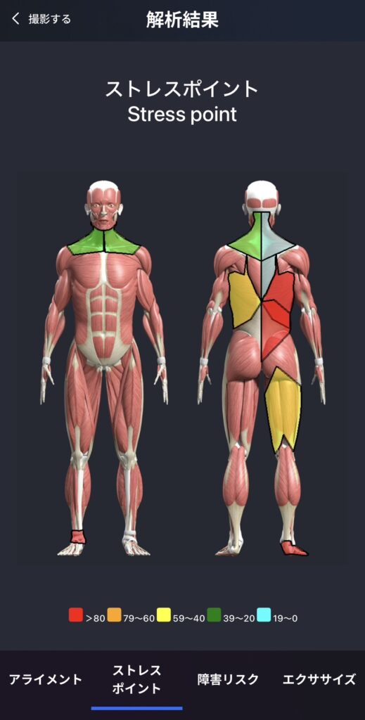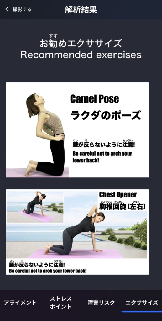 ご自身の姿勢スコアをチェックできるほか、AIが導き出す最適な改善アドバイスもその場で確認できます。