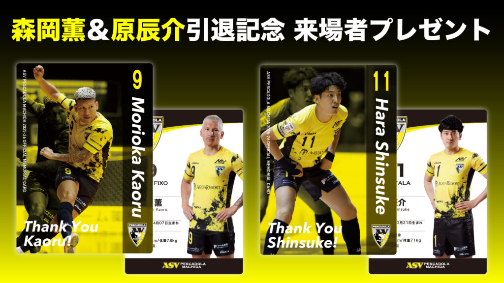 ペスカドーラ町田では、2選手の引退を記念しまして「メモリアルカード」を2,000名様にプレゼントします!