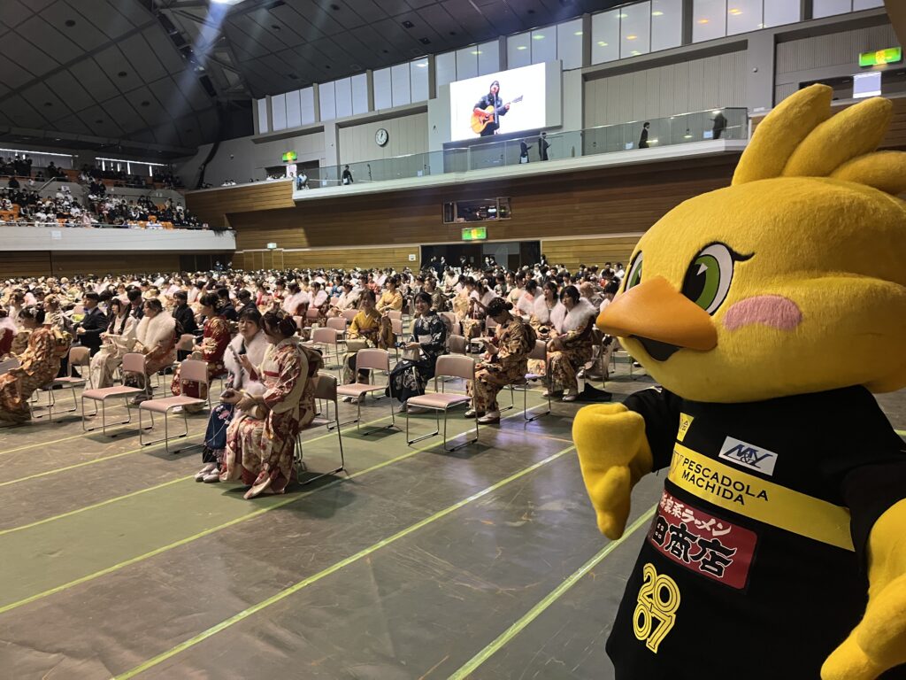町田市立総合体育館で今年度、二十歳を迎える人を祝う「二十祭まちだ2026」が開催され、石阪丈一 町田市長、木目田英男 町田市議会議長よりお祝いの言葉が贈られました。