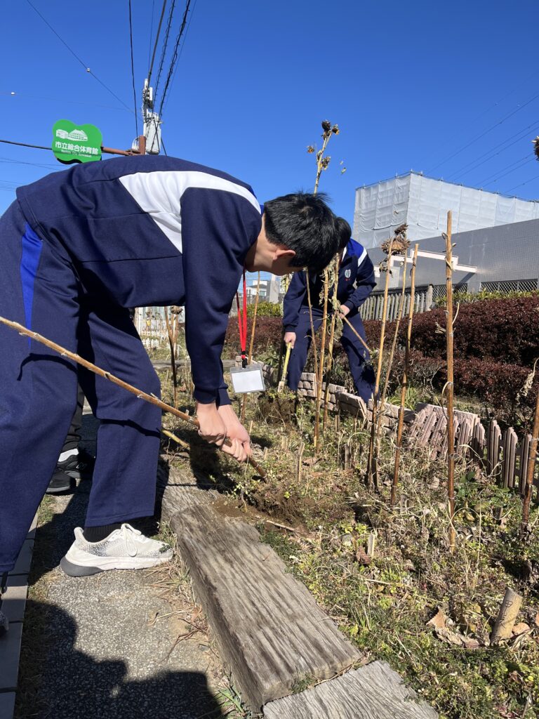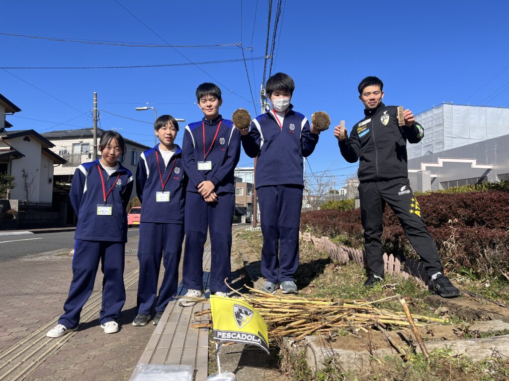 2026年1月23日町田市立南成瀬中学校 町田市立総合体育館の職場体験に来ていた皆様にペスカドーラ町田の職場体験をしていただきました。No.19 雲切啓太選手がペスカドーラ町田や、選手としての職業のお話をさせていただき、町田市立総合体育館の花壇のひまわりの種の採取を一緒に行いました。