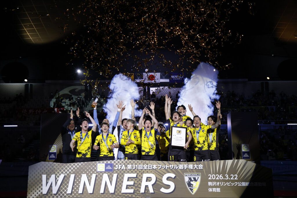 3月22日(日)に開催されましたJFA 第31回全日本フットサル選手権大会 決勝戦にて、バルドラール浦安に2-2(PK4-3)で勝利し、ペスカドーラ町田は2016年大会以来10年ぶり2度目(クラブとしては3度目)の優勝を飾りました!