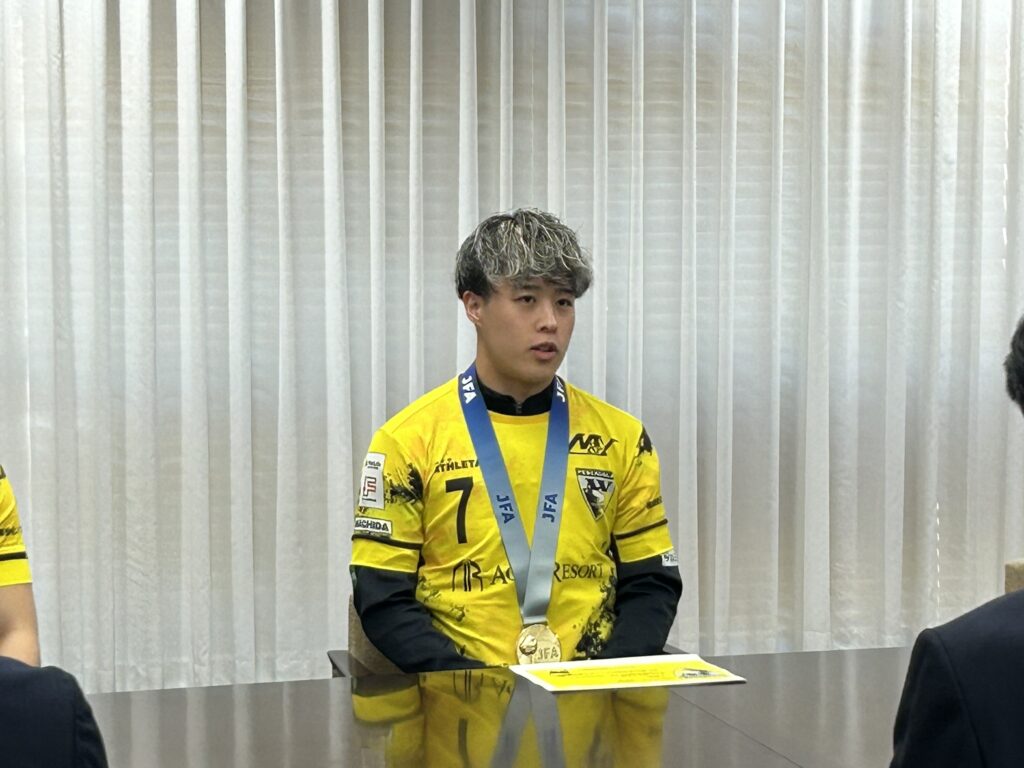 「自分は幼少期からペスカドーラ町田のスクールで育ててもらい、中学生時代はゼルビアでサッカーをしていた期間もありますが、高校生からまたペスカドーラ町田のユースチームに所属させていただき、約8年このチームに携わってきてようやくタイトルを取ることが出来ました。全日本フットサル選手権という負けたら終わりのカップ戦でタイトルを取れたことは自信にもなりましたし、このチームに恩返し出来たことを嬉しく思います。」