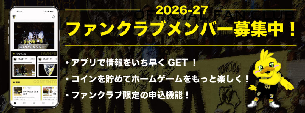 - 高校生以下の方はジュニア会員への入会でホームゲーム無料入場権が付与されます